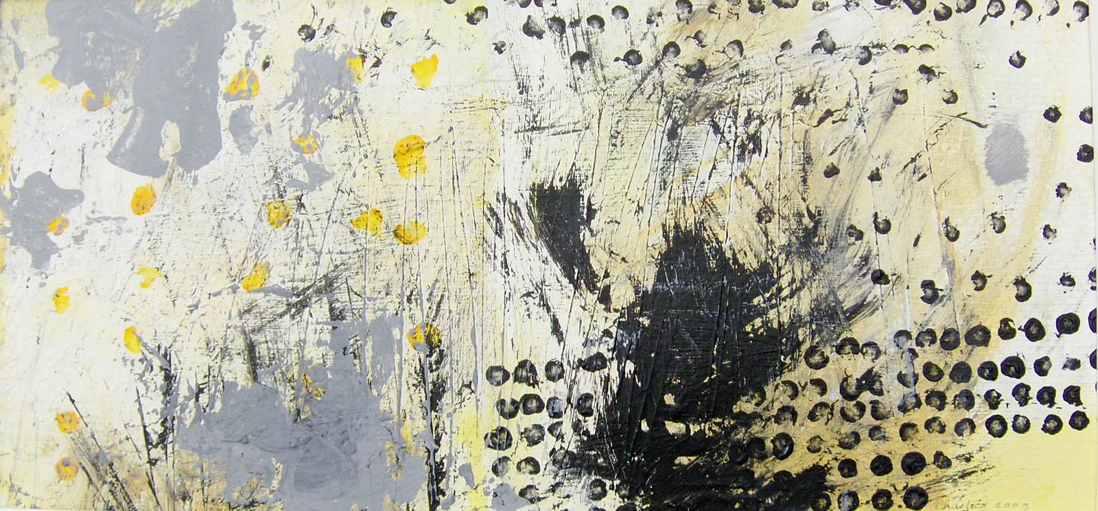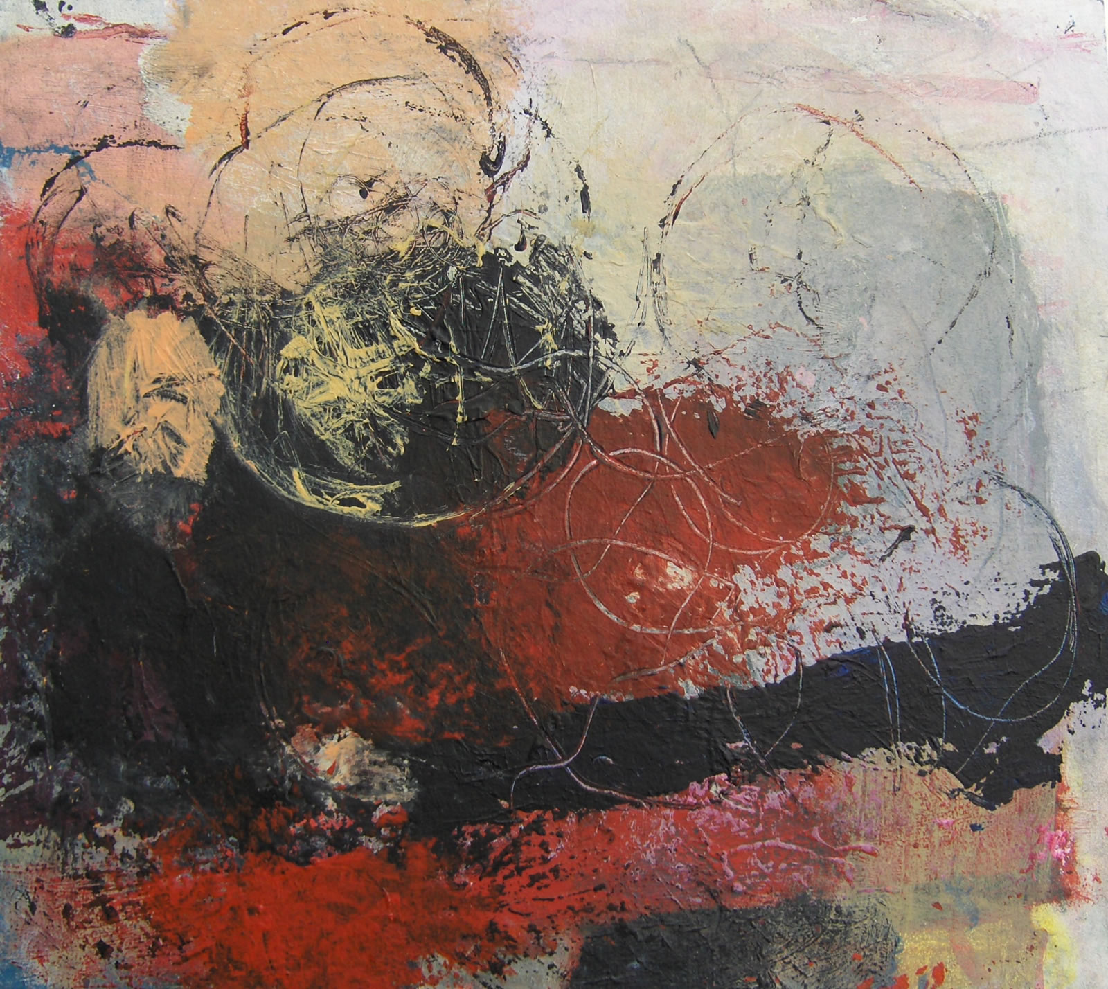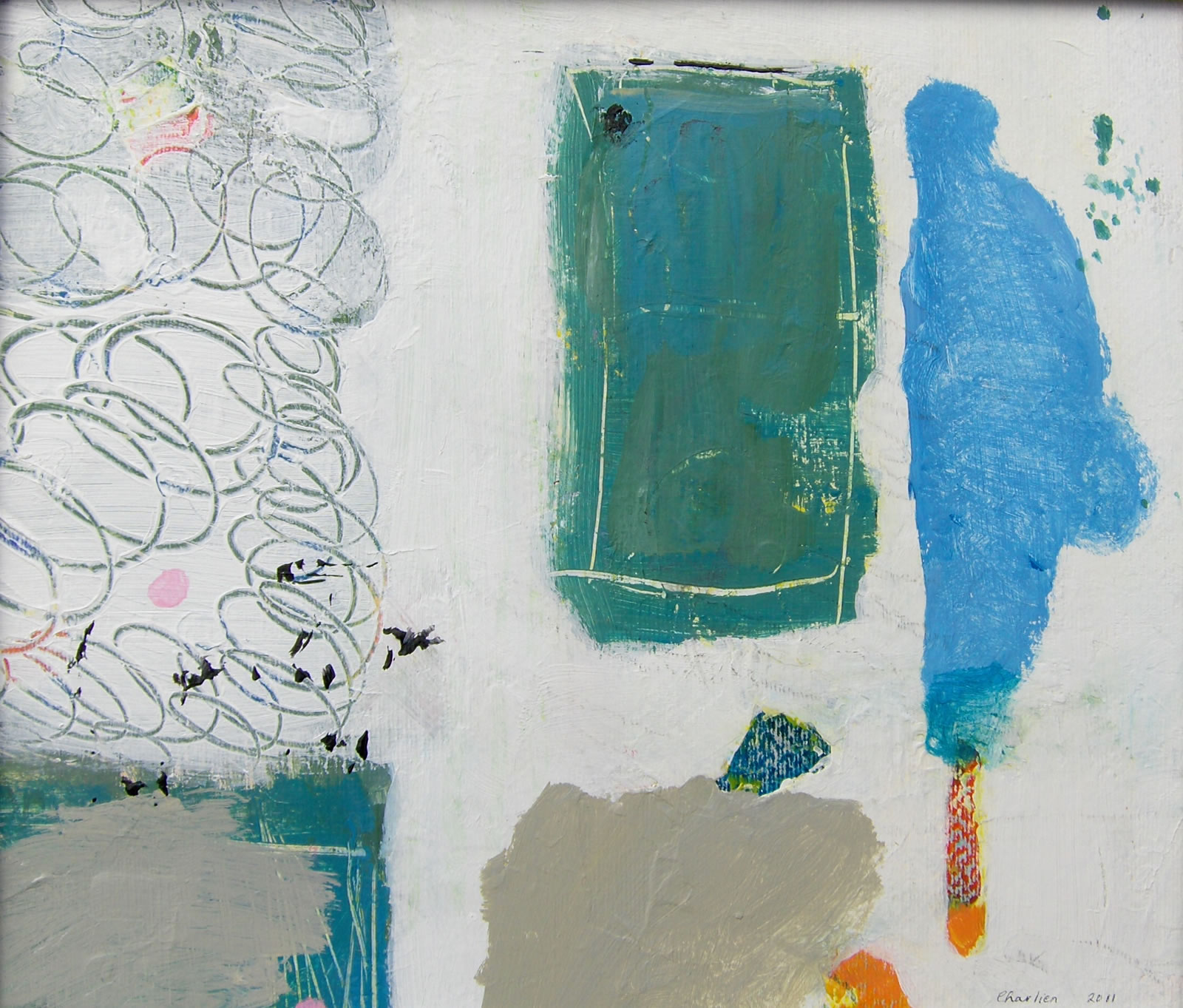 Na een groot aantal jaren in het theateronderwijs te hebben doorgebracht (eerst als studente, later als docente en beleidsmedewerkster) ben ik in het jaar 2000 overgestapt naar mijn andere grote jeugdliefde: de beeldende kunst. Ik begon met kleuren (werkwoord). Gewoon beginnen met een vlekje, een grotere vlek erover, ernaast, andere kleur, enzovoort tot er zich iets aan mij opdrong. Vervolgens dat oppeppen, of juist iets weghalen, of bekrassen of…….tot het klaar was. Dat is als ik er blij mee ben. Hierbij een klein aantal werken.