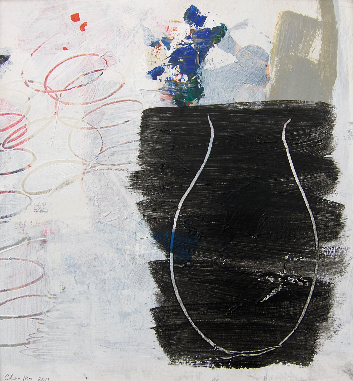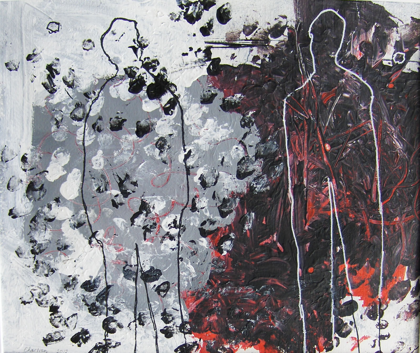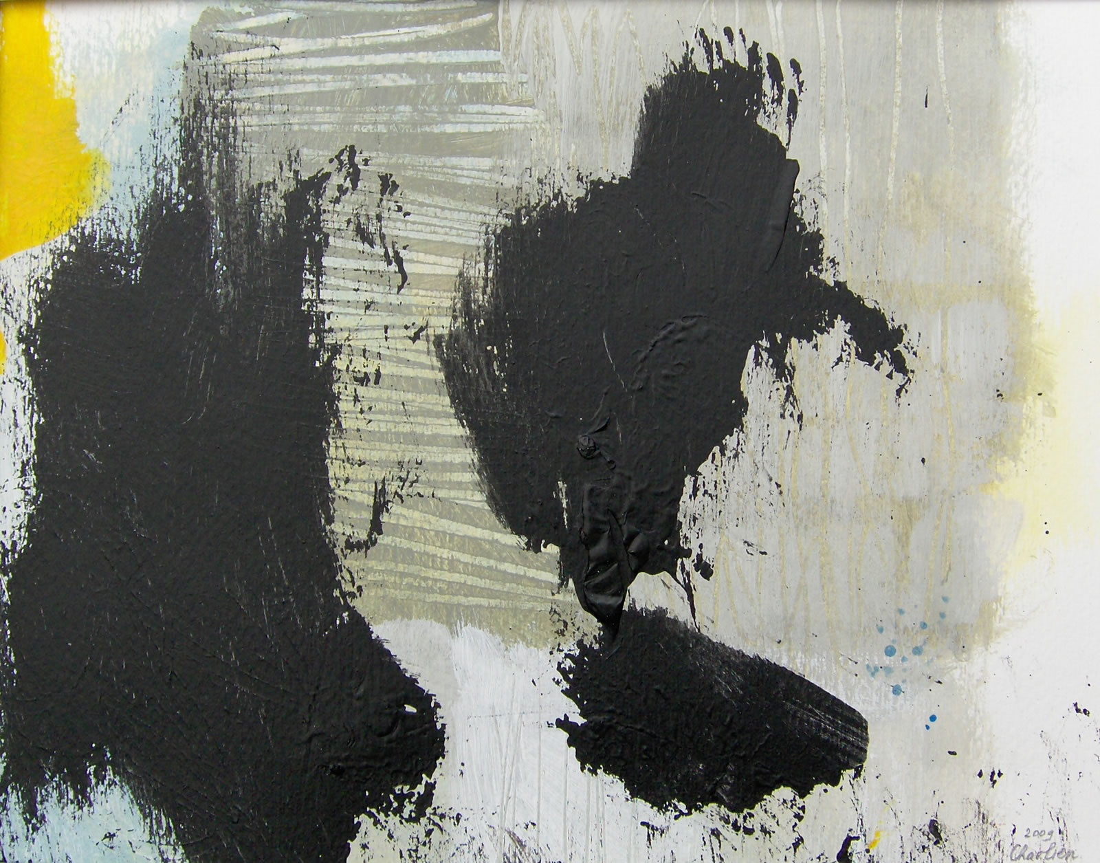 Na een groot aantal jaren in het theateronderwijs te hebben doorgebracht (eerst als studente, later als docente en beleidsmedewerkster) ben ik in het jaar 2000 overgestapt naar mijn andere grote jeugdliefde: de beeldende kunst. Ik begon met kleuren (werkwoord). Gewoon beginnen met een vlekje, een grotere vlek erover, ernaast, andere kleur, enzovoort tot er zich iets aan mij opdrong. Vervolgens dat oppeppen, of juist iets weghalen, of bekrassen of…….tot het klaar was. Dat is als ik er blij mee ben. Hierbij een klein aantal werken.